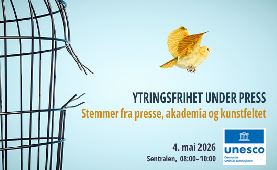 Den 4. mai inviterer UNESCO-kommisjonen til et gratis frokostseminar som belyser sammenhengen mellom pressefrihet, akademisk frihet og kunstnerisk frihet. Programmet består av sentrale stemmer som løfter nasjonale og internasjonale problemstillinger, og bidrar til å synliggjøre hvordan de tre frihetene henger sammen.