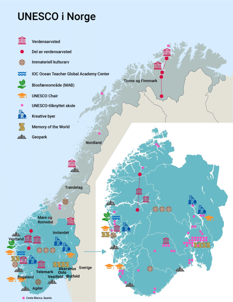 UNESCO er til stede i hele Norge gjennom ulike aktører og steder. Under kan du finne informasjon om medlemmene i den norske UNESCO-familien.